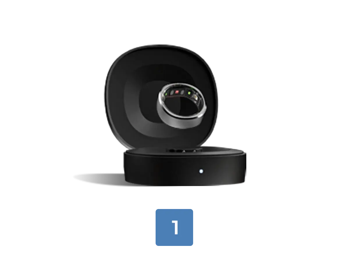 Open your PulseRive package and charge the ring with the provided case to activate Bluetooth.